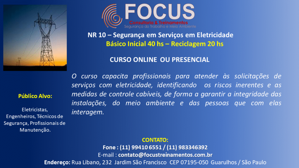 Focus Consultoria & Treinamentos é uma empresa especializada em consultoria e treinamentos de Segurança do Trabalho, Saúde Ocupacional e Meio Ambiente.